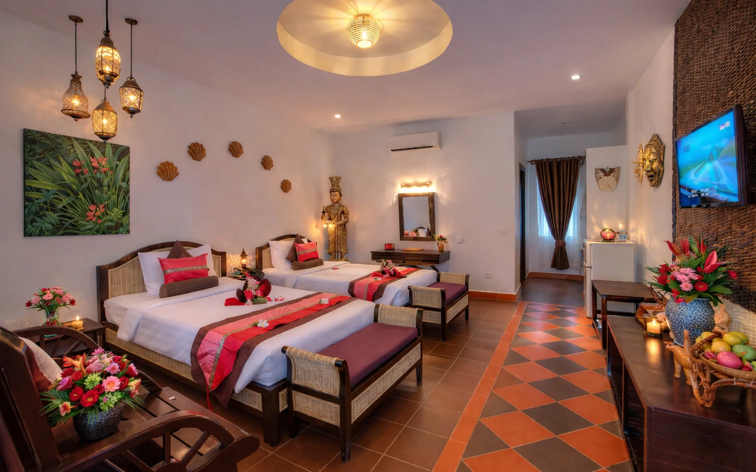 Kravan Siem Reap Boutique Villa invites guests to experience refined elegance in the serene surroundings of Phumĭ Kruŏs. Thoughtfully designed with sophisticated details and premium comfort, the villa delivers a true 4-star boutique experience, ideal for discerning travelers.